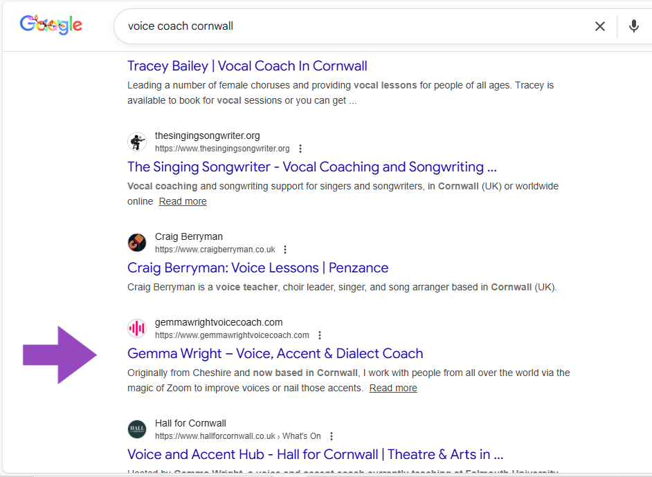 “I was struggling to get any local traction, but thanks to this strategy we’re now ranking on page 1 and seeing a clear lift in incoming business.” - Gemma Wright, Voice Coach